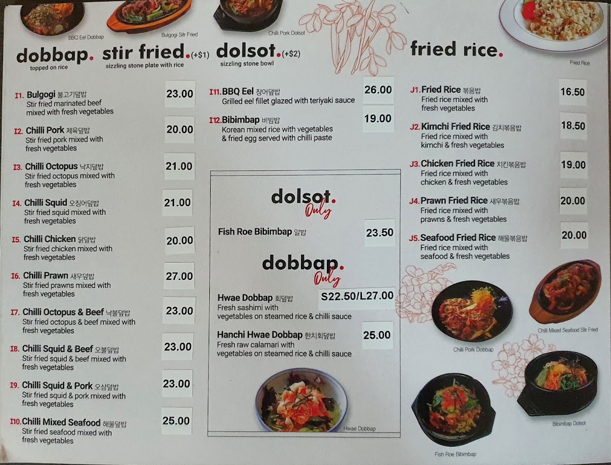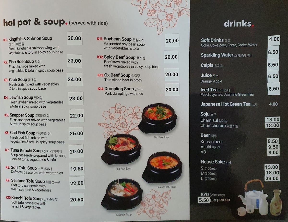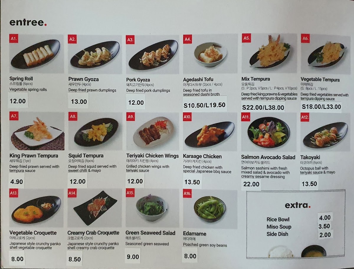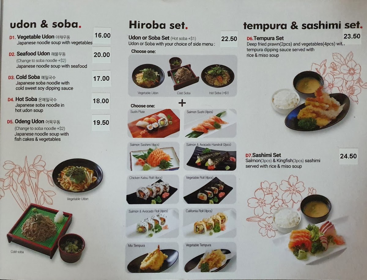 From a reviewer’s perspective, the menu at Hiroba Strathfield offers a wide variety of Japanese and Korean dishes that cater to different tastes, from light entrees to hearty main meals and set boxes. The entree selection includes King Prawn Tempura, Squid Tempura, Vegetable Croquette, Creamy Crab Croquette, and Green Seaweed Salad, which are great starters. The fried rice options such as Fried Rice, Kimchi Fried Rice, Chicken Fried Rice, Prawn Fried Rice, and Seafood Fried Rice provide flavorful and filling choices. For mains, dishes like Teriyaki Chicken, Teriyaki Beef, Teriyaki Fish, Teriyaki Salmon, and Pork Katsu are classic and satisfying. The hot pot and soup section features comforting dishes including 아가미매운탕, Jewfish Soup, Snapper Soup, Tuna Kimchi Soup, and Soft Tofu Soup. The lunch and dinner box options such as Tonkatsu Sashimi Box, Bulgogi Sashimi Box, 장어 사시미 도시락, Teriyaki Salmon Box, and Take Box are convenient and well-balanced meals. Noodle lovers can enjoy Vegetable Udon, Seafood Udon, Cold Soba, Hot Soba, and Odeng Udon, while Korean specialties like H3.Hwae Bibim Naengmyeon and H5.Japchae add variety. Rice dishes such as Bulgogi, Chilli Pork, Chilli Octopus, Chilli Squid, and Chilli Chicken are also available, along with Hwae Dobbap and Hanchi Hwae Dobbap. The sashimi and sushi section includes Natural Oyster & Salmon Sashimi, Fresh Natural Oyster, and sushi nigiri like Avocado, Inari, Tamago Egg, Flying Fish Roe, and Salmon Roe. Overall, the menu is diverse and satisfying, with many combination boxes like Sakura Box, Tempura & Sushi Box, Vegetarian Box, and Tempura & Sashimi Box offering great variety for diners.